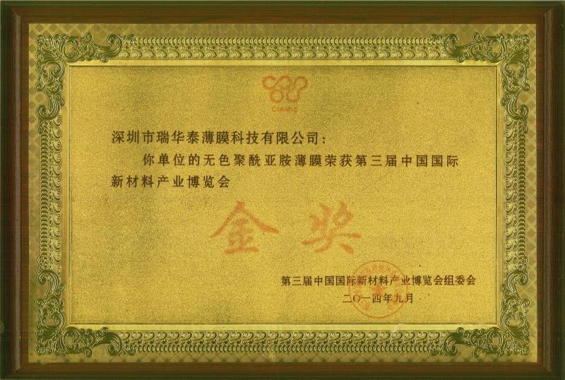 中国国际新材料产业博览会金奖